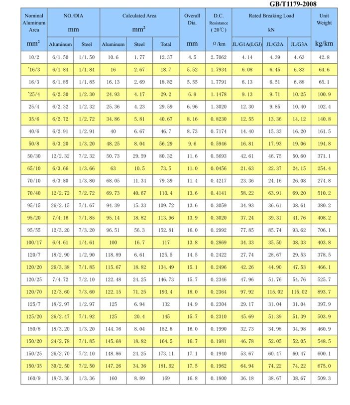 Normally these conductors have a galvanized steel core of 1,7,19 or 37 wires, surrounded by concentric layers of aluminum wires.